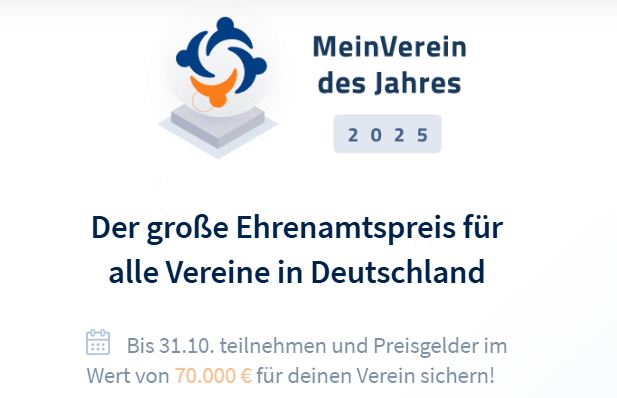 Wir nehmen am Wettbewerb „MeinVerein des Jahres 2025“ von WISO MeinVerein teil – ein bundesweiter Ehrenamtspreis für alle Vereine und die Menschen, die sich mit Herzblut engagieren!